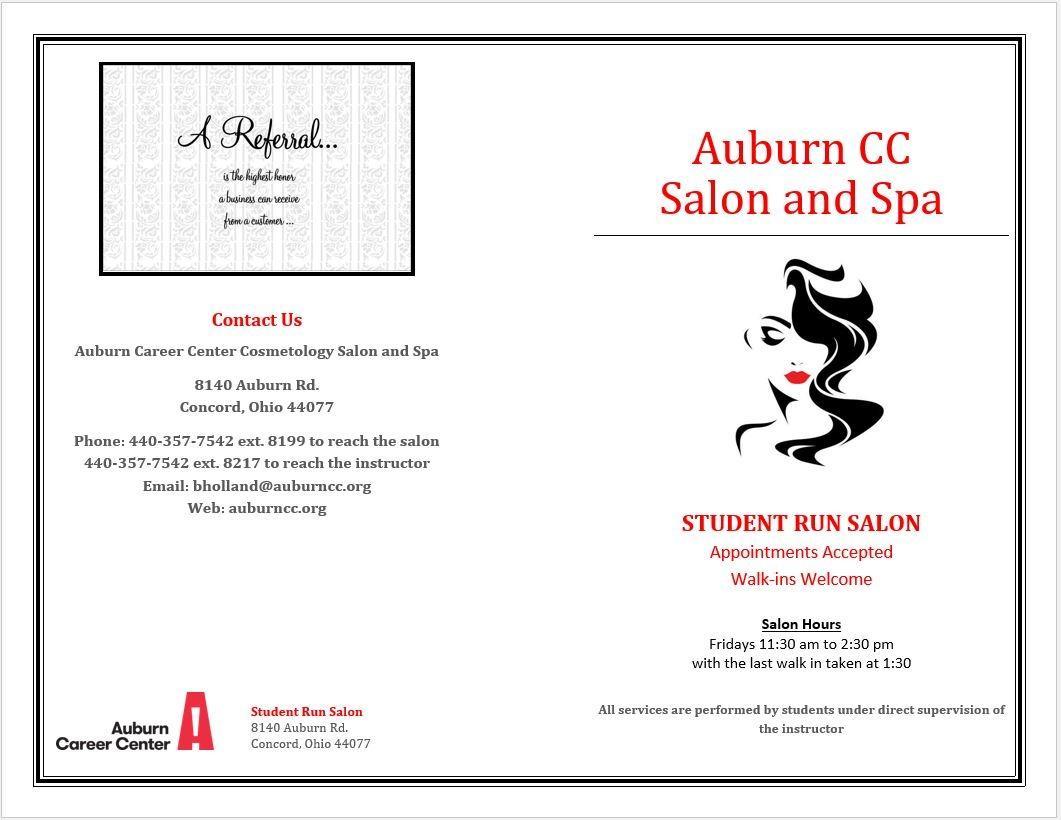 Our Cosmetology Salon is open on select Fridays (based on school schedule) from 11:30 am - 2:30 pm; last walk-in at 1:30 pm. Call for more 440-357-7542 information. The cosmetology salon will be closed on Nov. 29th and Dec. 6th.